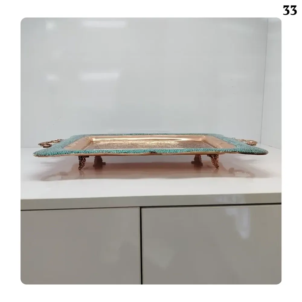 تُعد هذه الصينية النحاسية المرصعة بالفيروز خياراً مثالياً للمناسبات الخاصة، جهاز العروس، أو لإضفاء لمسة أصيلة على ديكور المنزل أو المكتب. يأتي كل منتج مع شهادة مكتوبة وضمان لمدة ١٠ سنوات للجودة والأصالة، مما يمنح المشتري ثقة كاملة في القيمة والدوام. يوفر متجر ٣٣ إمكانية الشراء الفردي والجملة، مع تغليف آمن وشحن إلى جميع أنحاء إيران والعالم، ليتمكن عشاق الحرف الإيرانية من الاستمتاع بجمالها أينما كانوا. هذه القطعة النفيسة تمثل اندماجاً رائعاً بين الفن، الأصالة، والوظيفة العصرية، وتضفي إحساساً بالجمال والهدوء في أي مكان توضع فيه.