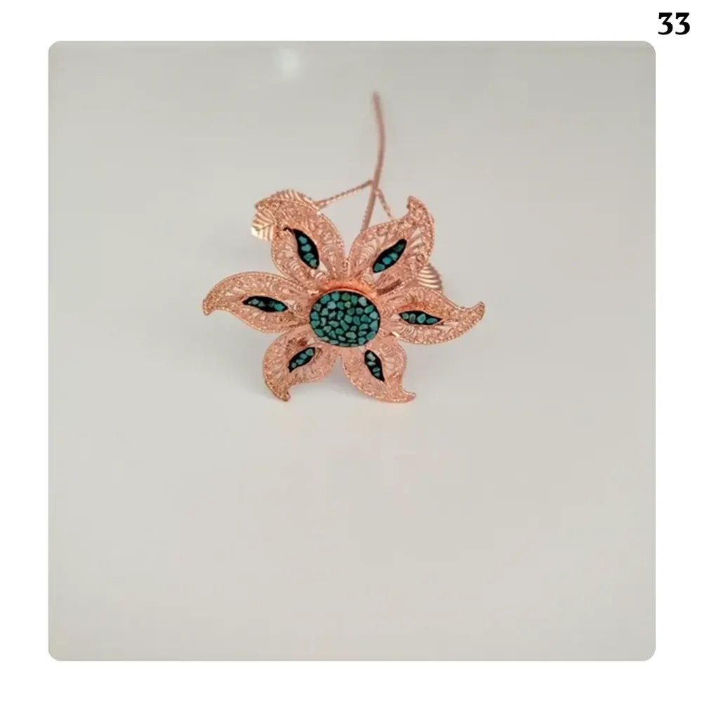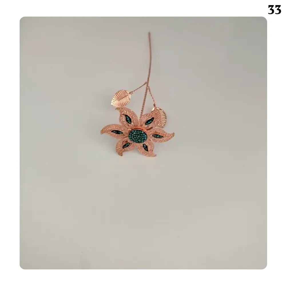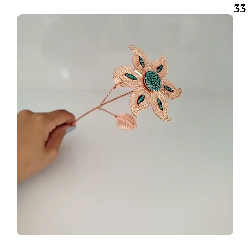 سنگهای فیروزه اصل نیشابور که در این گل بهکار رفتهاند، با رنگ آبی طبیعی و درخشان خود روحی زنده به محصول بخشیده و ترکیب چشمنوازی از مس و فیروزه ایجاد کردهاند که هم نشانهای از اصالت ایرانی و هم نمادی از زیبایی و آرامش است. هر قطعه از این سنگهای قیمتی با دقت و نظم خاصی بر روی سطح مسی نصب میشود تا هماهنگی کامل میان نقش و رنگ حاصل شود. گل مسی فیروزه کوبی با چنین ویژگیهایی، گزینهای ایدهآل برای تزئین دکوراسیون منزل، محیط کار یا حتی vitrines هنری است و در عین حال میتواند هدیهای خاص، ماندگار و اصیل برای عزیزان شما باشد.